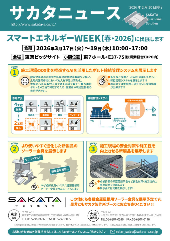 2026.02.10 お知らせ 展示会情報 スマートエネルギーWEEK【春・2026】に出展します スマートエネルギーWEEK【春・2026】に出展します。 展示会では新製品・新サービスを出展するほか、実演体験も出来ますので是非ともご来場お待ちしております!! お知らせ一覧に戻る
