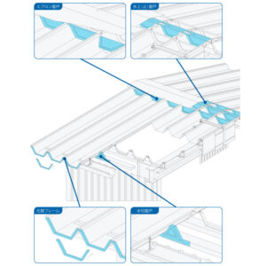 折板屋根を取り付ける際にできる「すき間を塞ぐため」の部材です。面戸を取り付けることにより、このすき間を最小限にすることができ、外部からの雨水の侵入、風やほこりの吹込みを防ぎます。