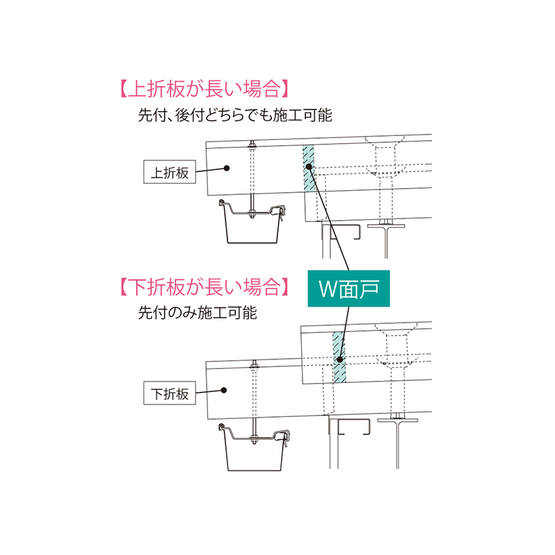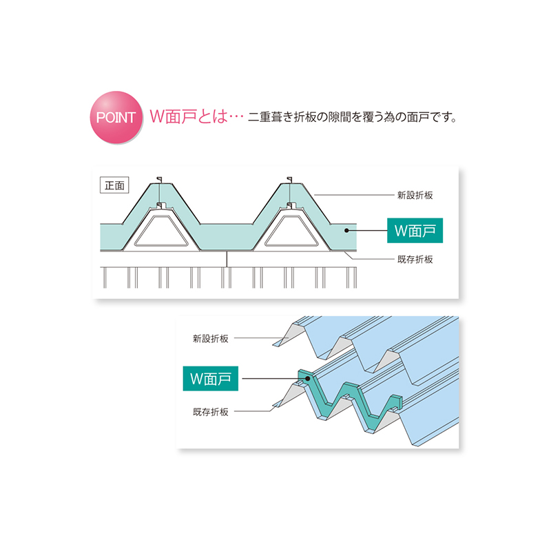ハゼ式折板Wパック・二重葺きの上下折板の隙間を覆うための面戸です。