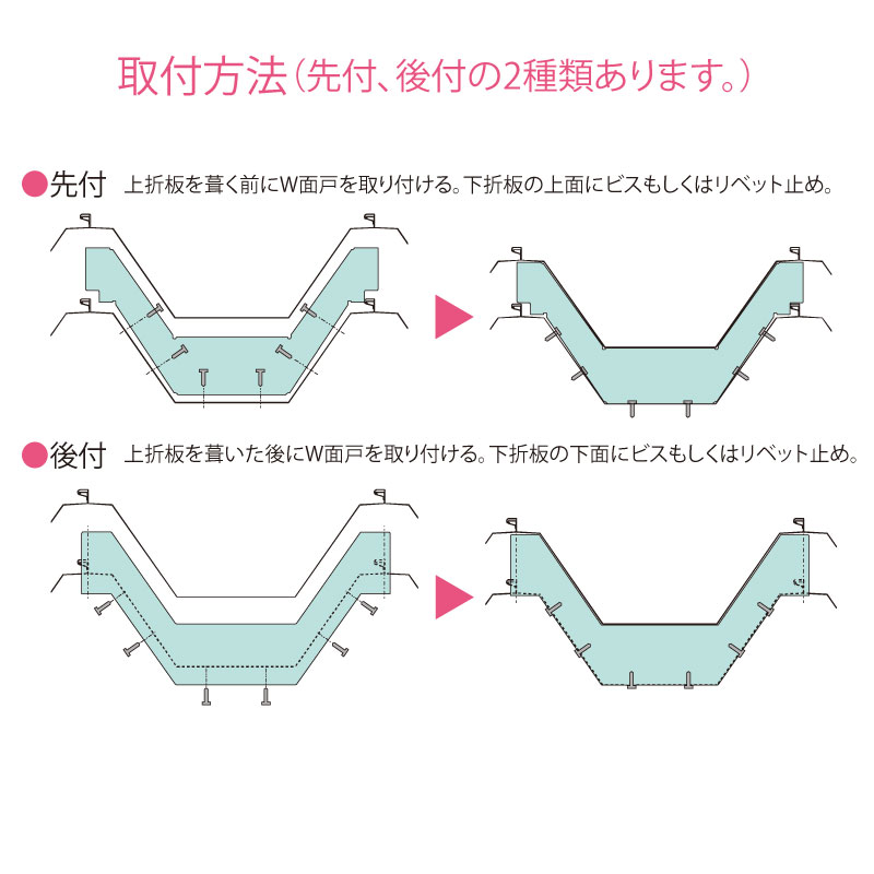 | 550タイプ | 550タイプ | ふき葺® | 先付/後付 | 2 | 有/無 | – | 特注製作 | |