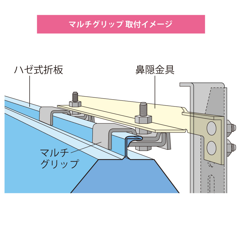 角ハゼ折板の上に鼻隠しパネルを取り付けるときのベース金具として。