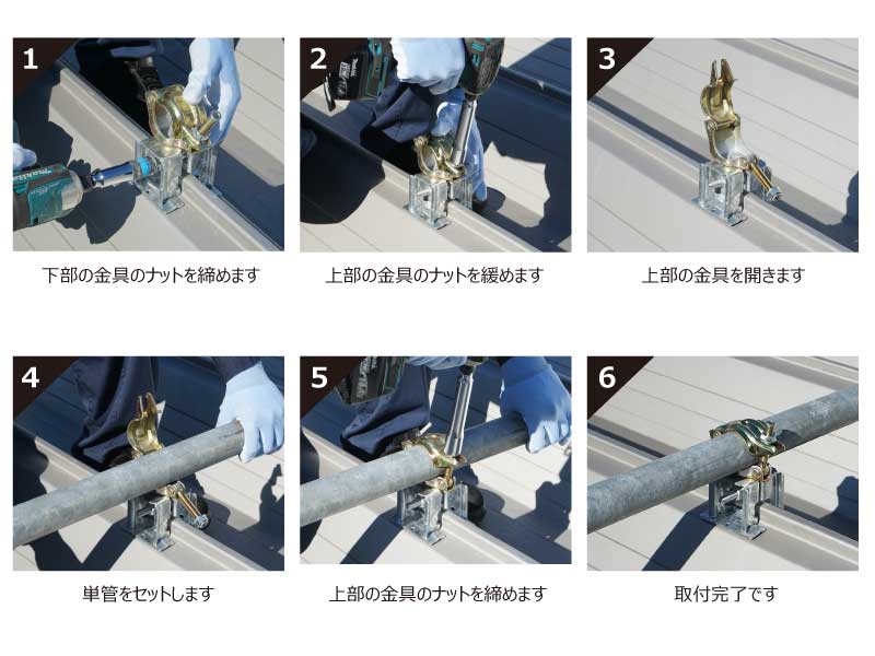 - ・ナットが外れない構造だから、屋根からのナット落下の心配がなく、施工現場の安全性を高めます。