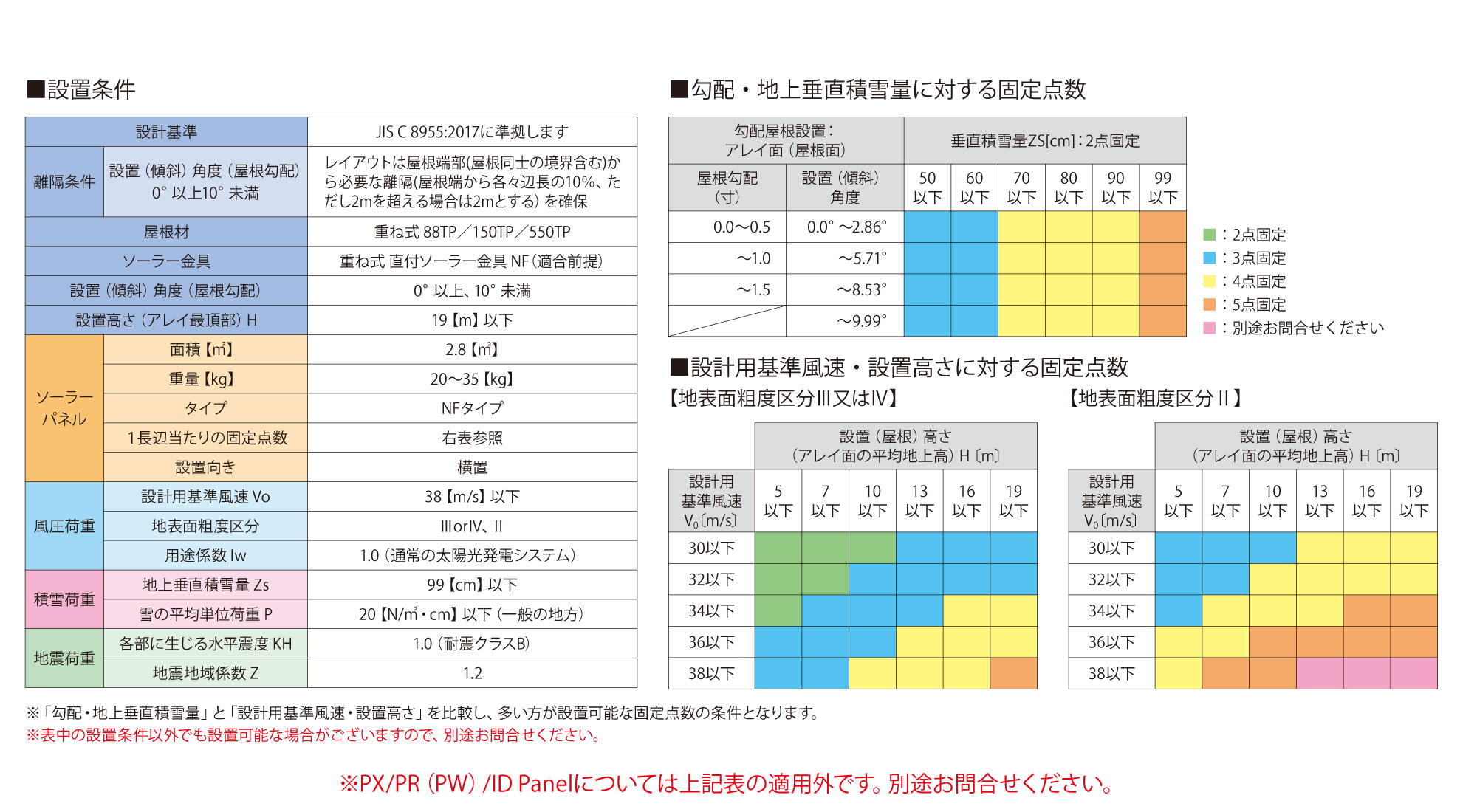モジュール取付部断面タイプモジュール高さタイプ金具取付場所重量(kg)簡易図面施工要領書設置可能範囲全工法共通事項