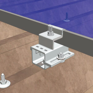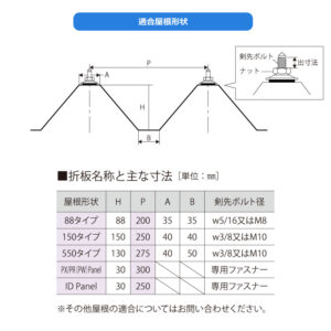 重ね式折板屋根用の太陽光パネル取付金具です。ブラインドリベットによる締結で簡単に施工ができます。