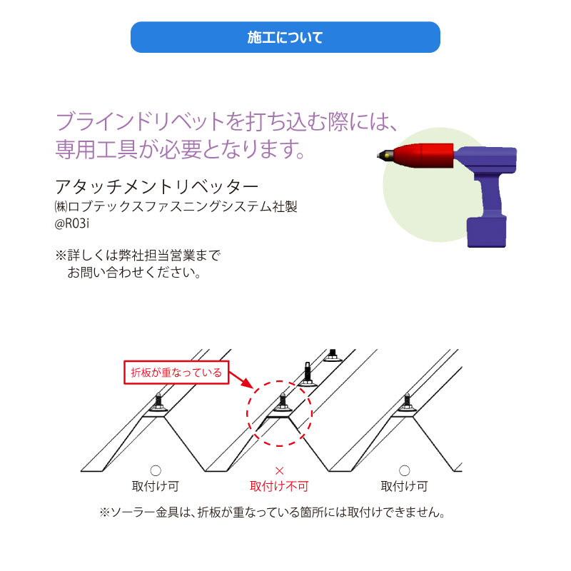 • ブラインドリベットによる締結だから簡単に施工できます!