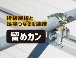 ハゼ式折板屋根と足場つなぎを連結!留めカン